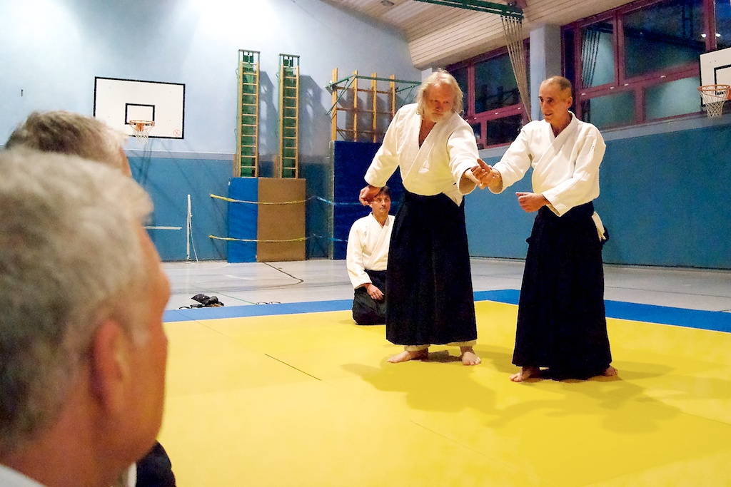 Paco begann das Training mit der Tainohenko-Bewegung und legte sein und unser Augenmerk auf die korrekte Position, die aufrechte Körperhaltung und die Lockerheit in der Ausführung. Zum Abschluss übten wir aus Katatori Men Uchi die Umleitung in den Ikkyo.